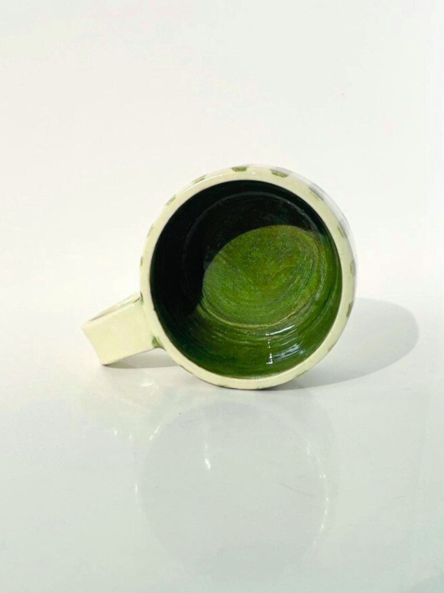 This best seller ceramic mug features a hand painted stripe design in a deep emerald green with a timeless modern build.